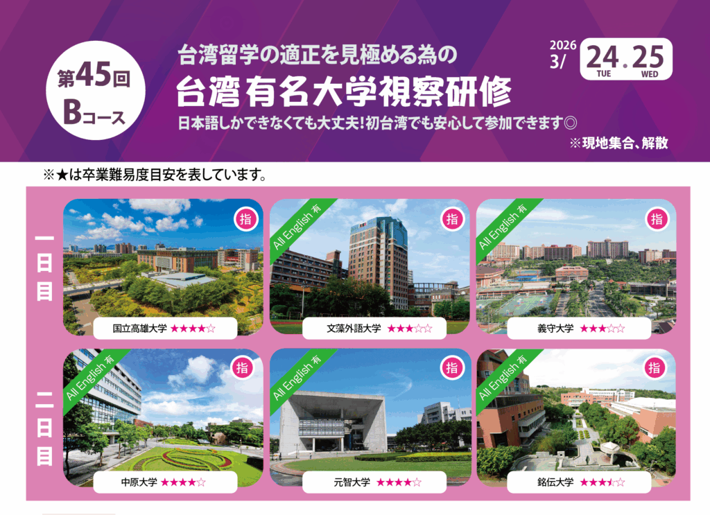 ▶詳細・お申し込みはこちら → https://taiwanryugaku.com/inspection_training/