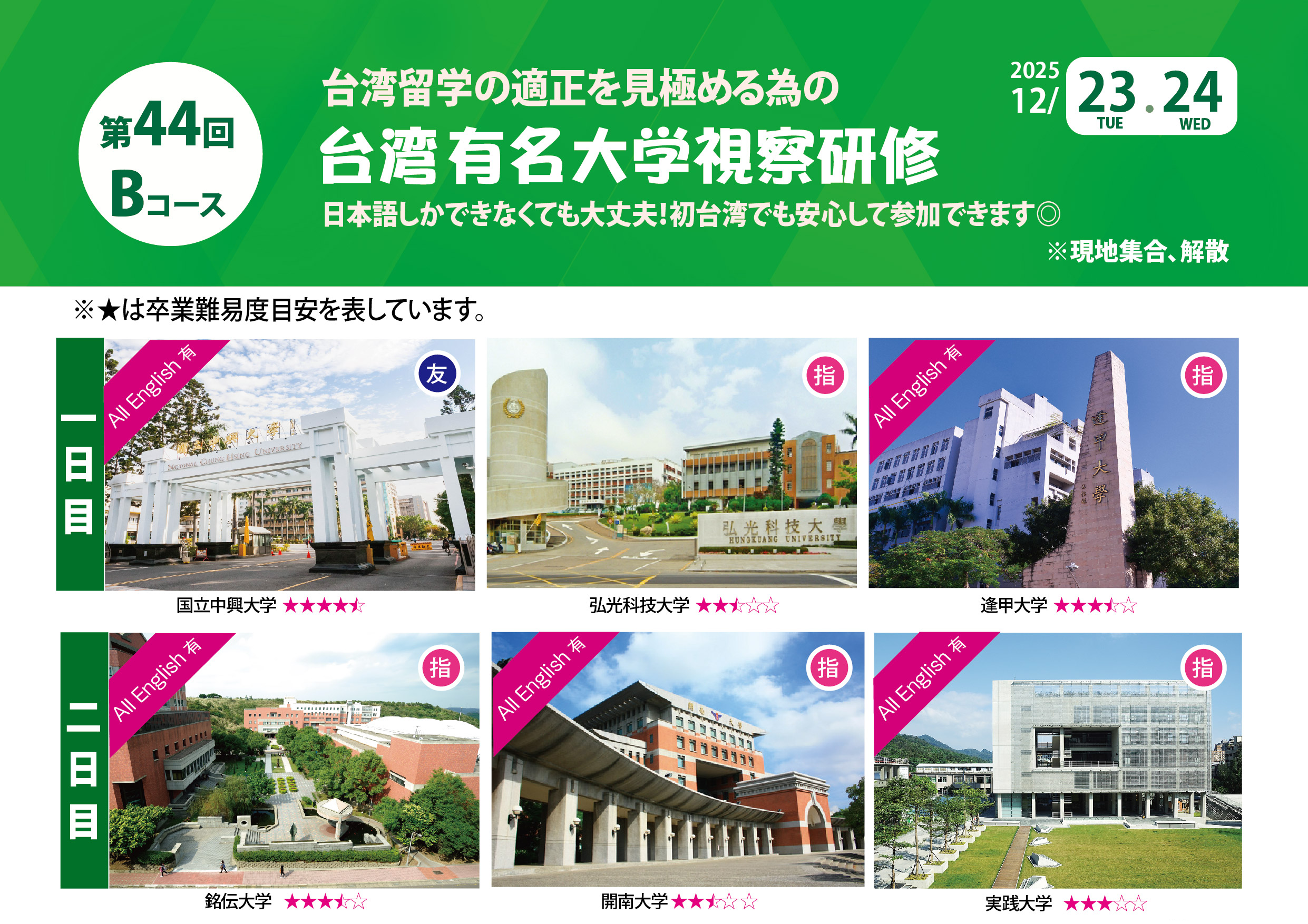 日本の皆様に安心して台湾への留学をしていただけるよう、情報提供や入学手続きのサポート、